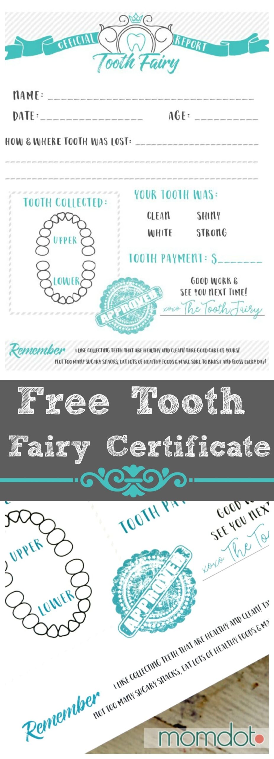 FREE Tooth Fairy Certificate Printable MomDotFREE Tooth Fairy Certificate Printable MomDot (www.momdot.com)