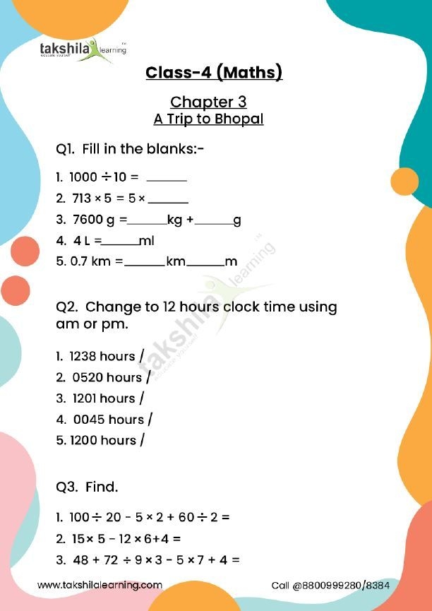 Worksheet For Class 4
