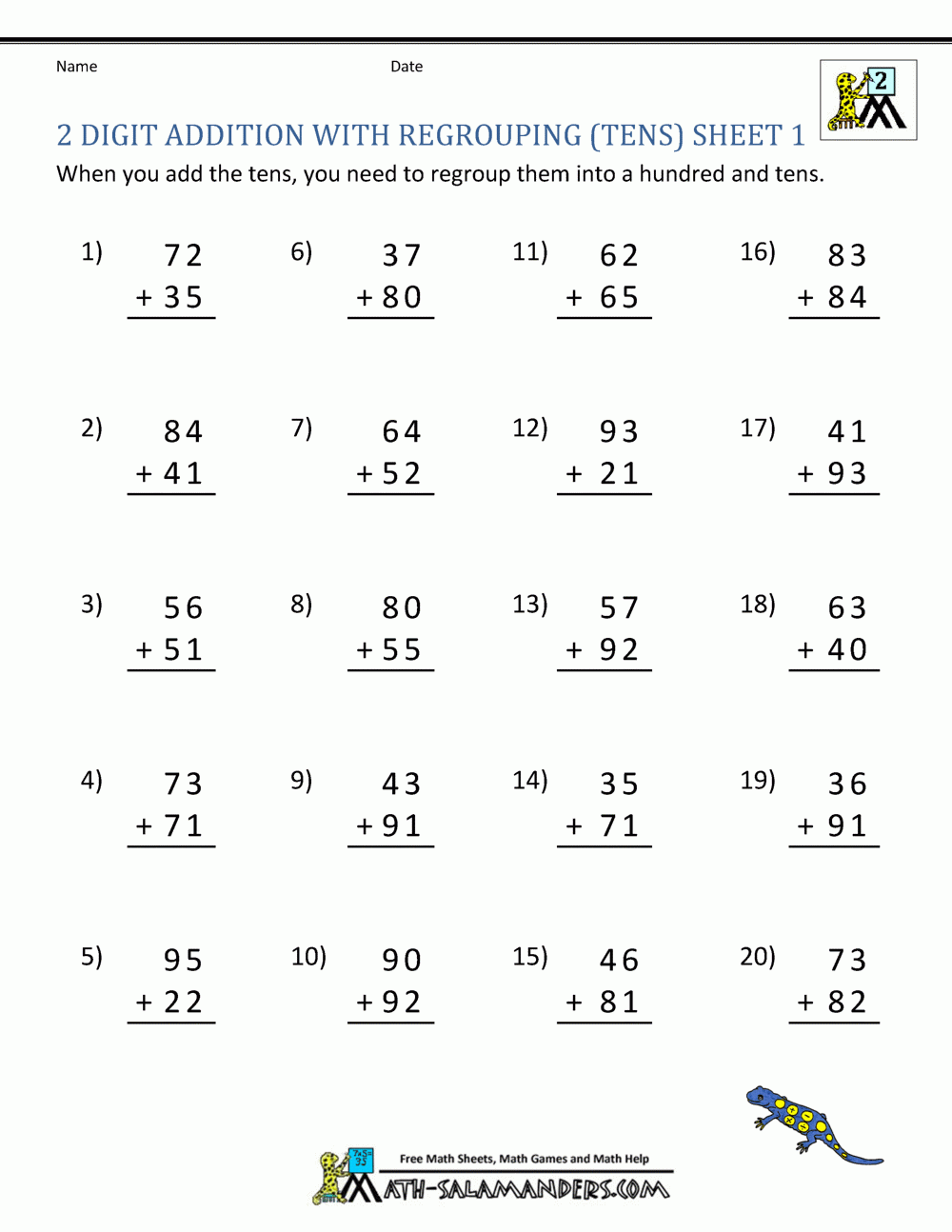 In classrooms, teachers use 2 Digit Addition Worksheets to reinforce lessons. As an example, a math worksheet might include fractions to solve, while an English worksheet may have vocabulary exercises.