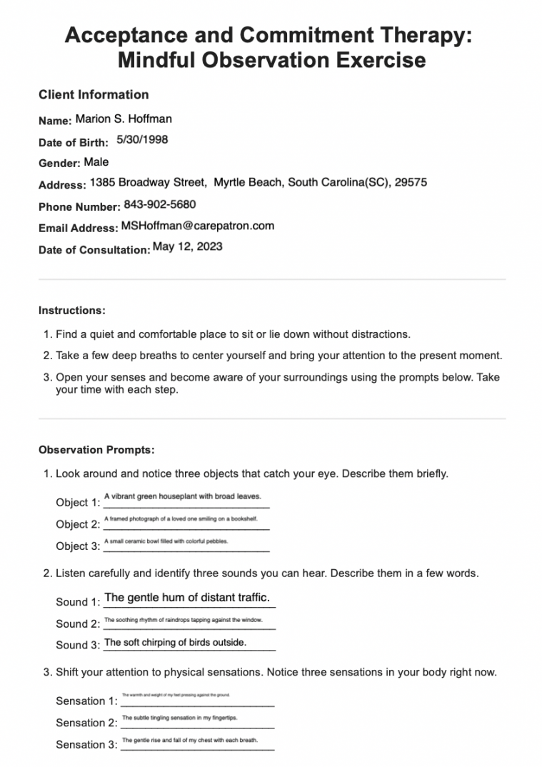 ACT worksheets also often include exercises to help individuals practice mindfulness and acceptance. These exercises can help individuals become more aware of their thoughts and emotions without judgment, and learn to let go of the struggle to control or avoid them. By practicing mindfulness and acceptance, individuals can develop psychological flexibility and resilience.