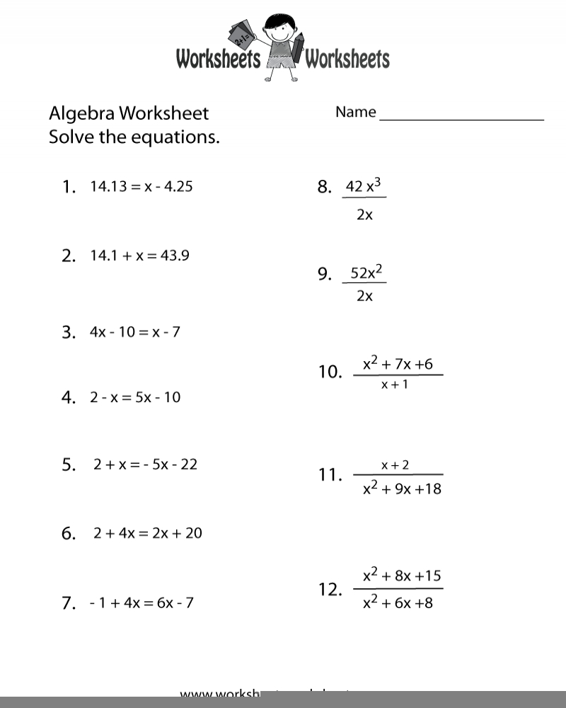 Algebra is a fundamental branch of mathematics that deals with variables and symbols to represent numbers and quantities in equations and formulas. It is an essential skill for students to master as it is used in many fields such as science, engineering, economics, and more. One effective way to practice and improve algebra skills is through algebra worksheets.