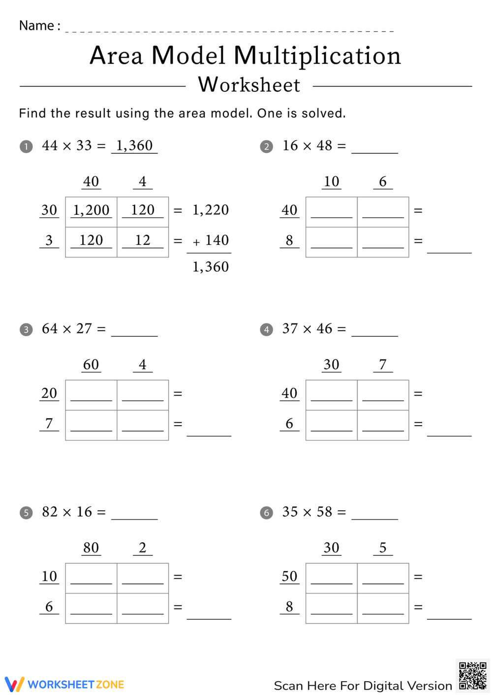 Area model multiplication worksheets are beneficial for students of all ages and abilities. They can be used to introduce the concept of multiplication to young learners or to provide extra practice for older students who may be struggling with the traditional algorithm. These worksheets can also be used as a form of assessment to gauge students’ understanding of the multiplication process.