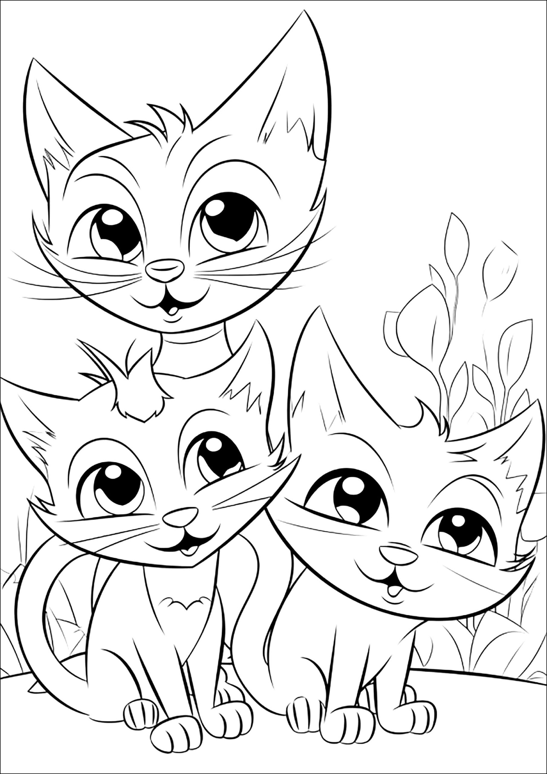 Three Mischievous Cats Cat Coloring Pages For KidsThree Mischievous Cats Cat Coloring Pages For Kids (www.justcolor.net)