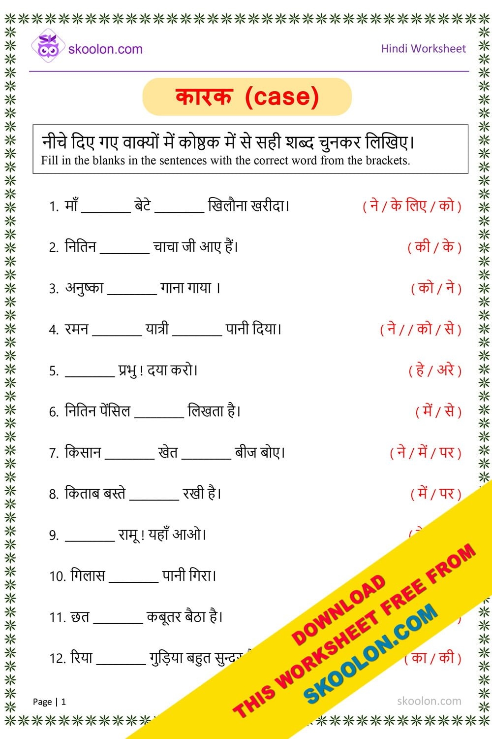 Karak Hindi Grammar Worksheet 3 Skoolon