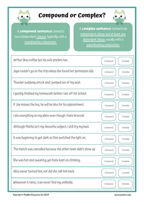 Compound Sentences Worksheet KS2 Primary Resources Worksheets Library