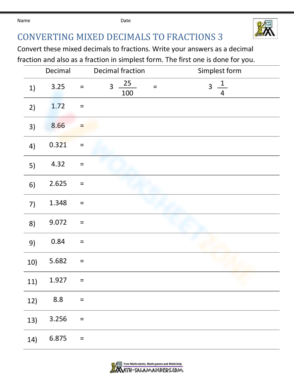 These worksheets typically include a variety of fraction-to-decimal conversion problems, ranging from simple to more complex fractions. Students are required to convert the given fractions into decimal form by dividing the numerator by the denominator. This process helps them understand the concept of decimals as a way to represent parts of a whole, and reinforces their understanding of division and place value.