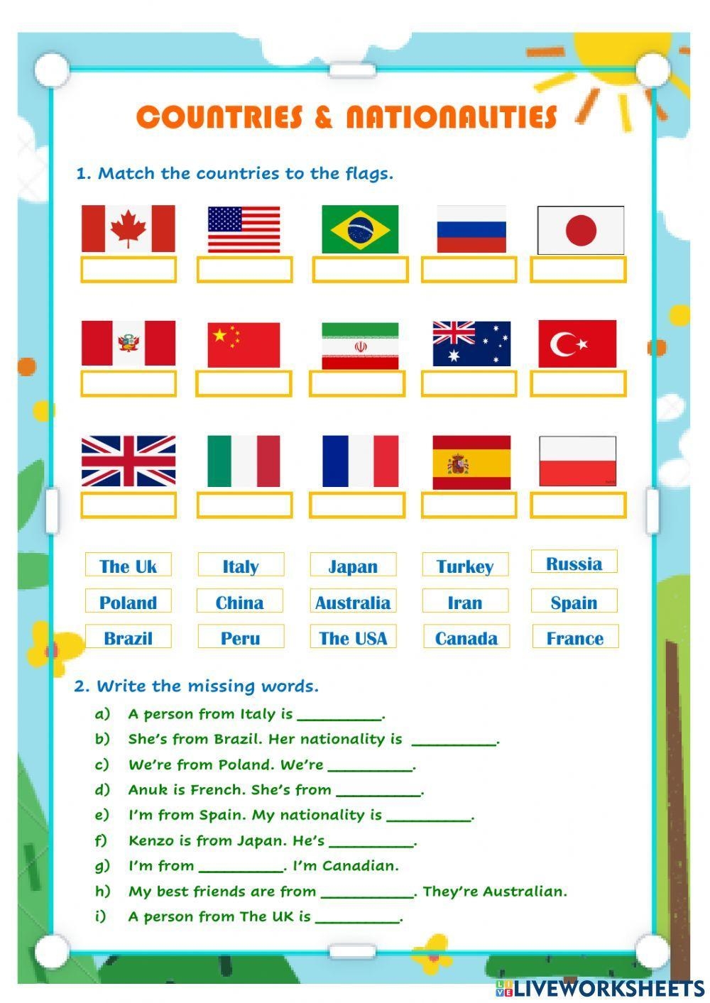 Whether you’re a teacher looking for a new lesson plan or a parent wanting to supplement your child’s learning, this worksheet is a fantastic resource for teaching about countries and nationalities in a fun and interactive way.
