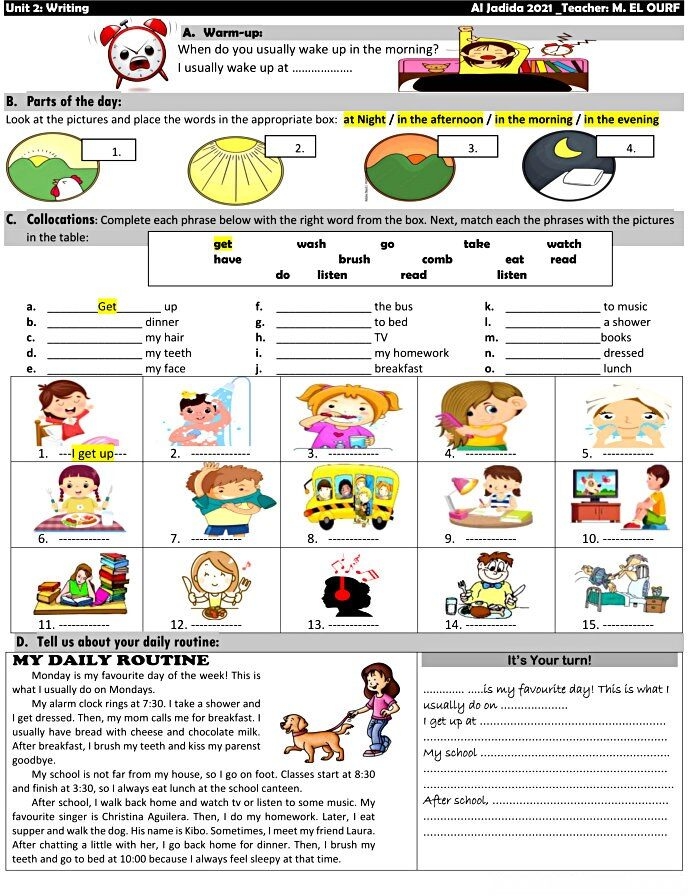 Writing Daily Routine Worksheet LessonWriting Daily Routine Worksheet Lesson