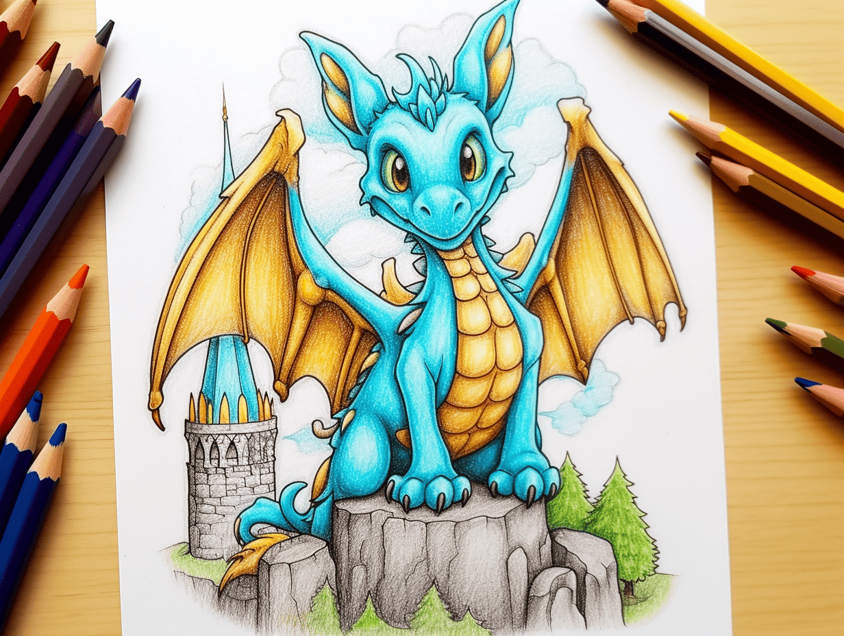 Children will love coloring these dragon pages and creating their own magical worlds filled with dragons and adventure. They can practice their fine motor skills and hand-eye coordination as they carefully color within the lines and blend different colors together. It’s also a great way for children to learn about different colors and experiment with color combinations.