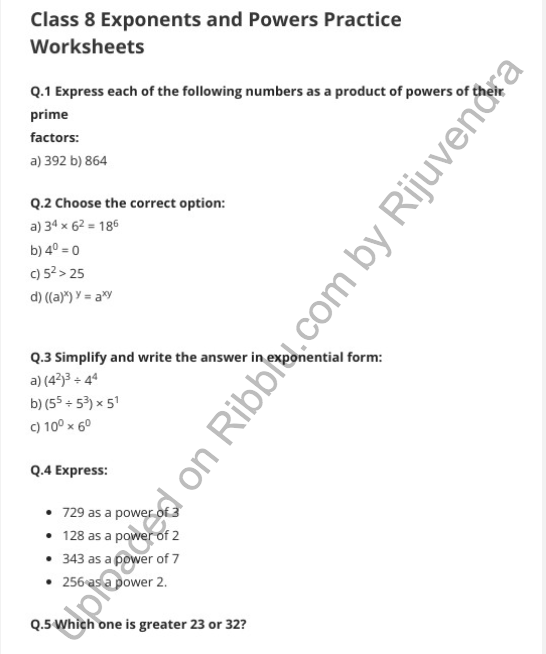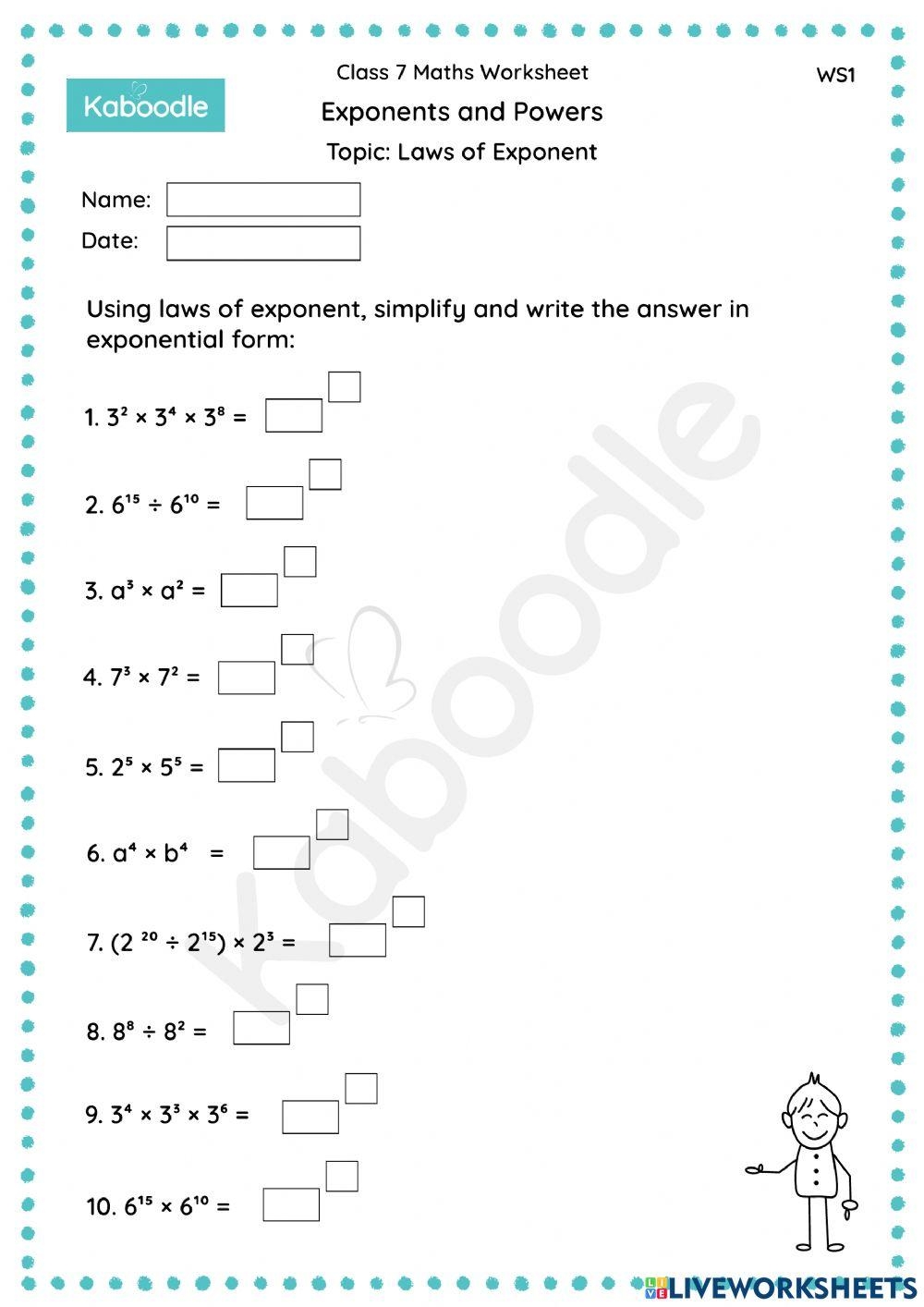 In educational settings, educators use Exponents And Powers Class 7 Worksheet to assess student understanding. As an example, a math worksheet might include fractions to solve, while an English worksheet may have vocabulary exercises.