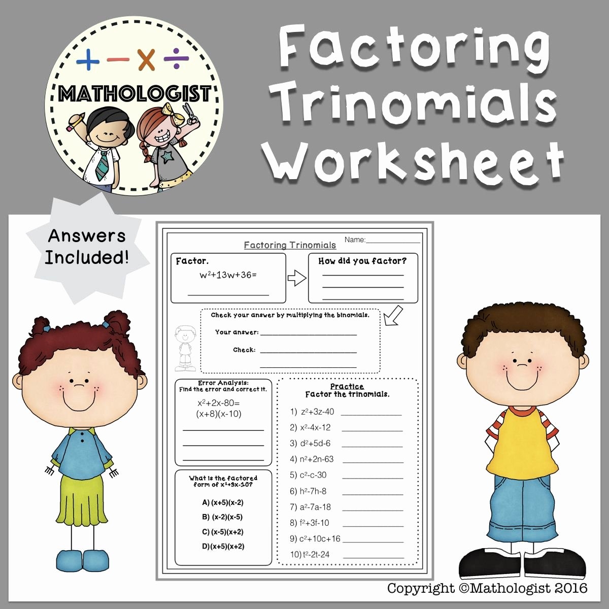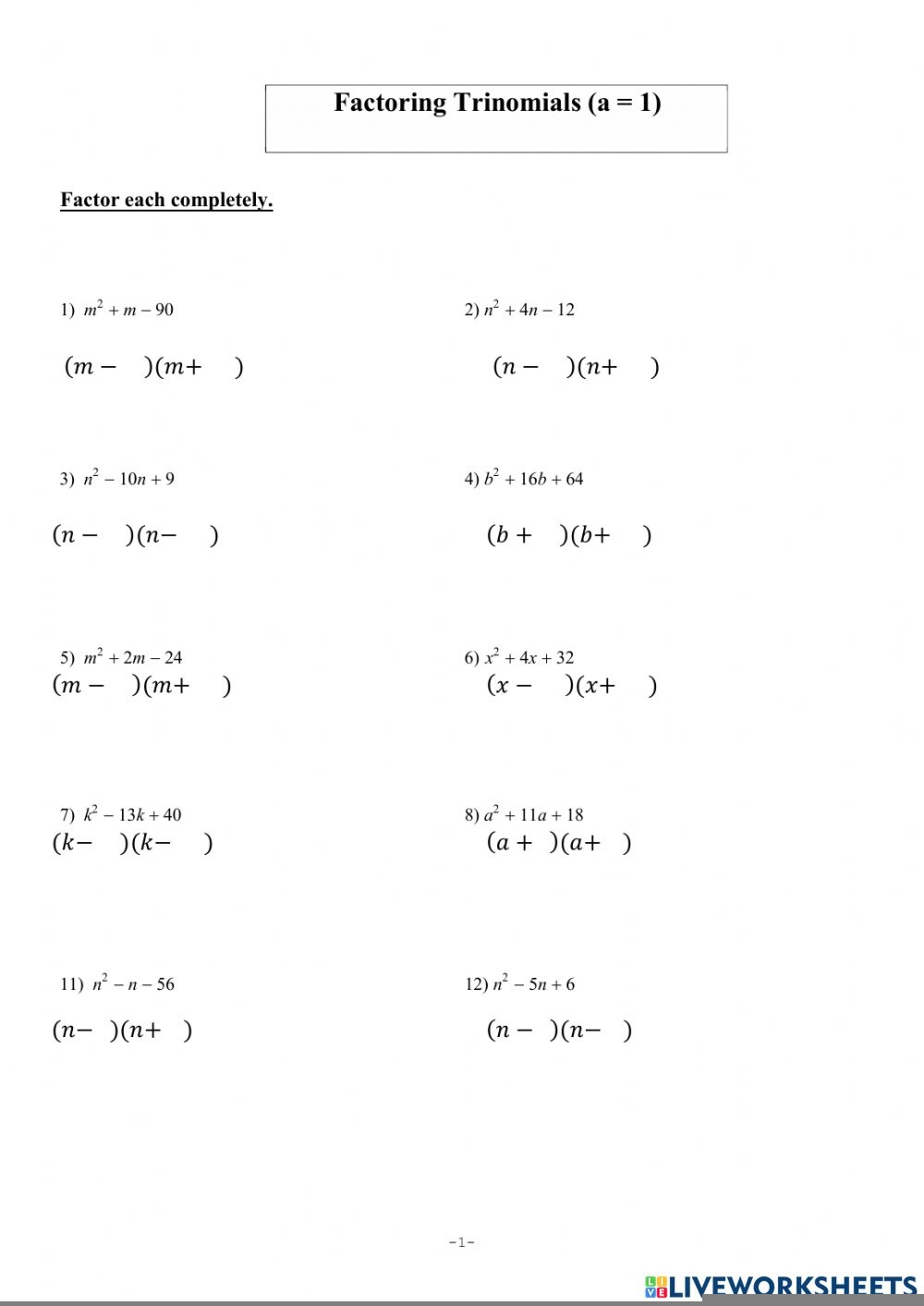 Factoring trinomials is an important skill in algebra that involves breaking down a trinomial expression into its factors. This process can be challenging for students, but with practice and the right resources, it can become easier to understand and master. One helpful tool for practicing factoring trinomials is a worksheet specifically designed for this purpose.