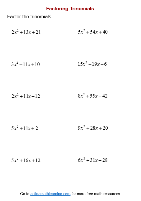 Factor Trinomials Worksheets Printable Online Answers Examples (worksheets.clipart-library.com)