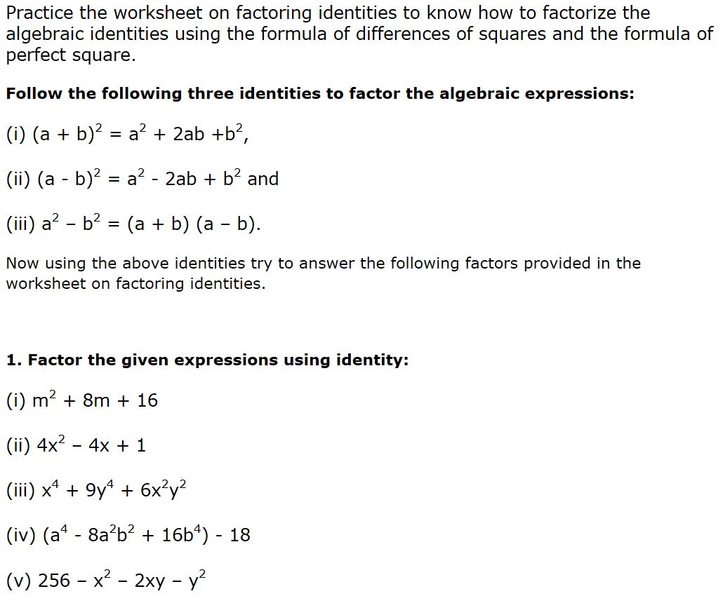 In classrooms, educators use Factorisation Class 8 Worksheet to assess student understanding. For instance, a math worksheet might include simple addition problems, while an English worksheet may have vocabulary exercises.