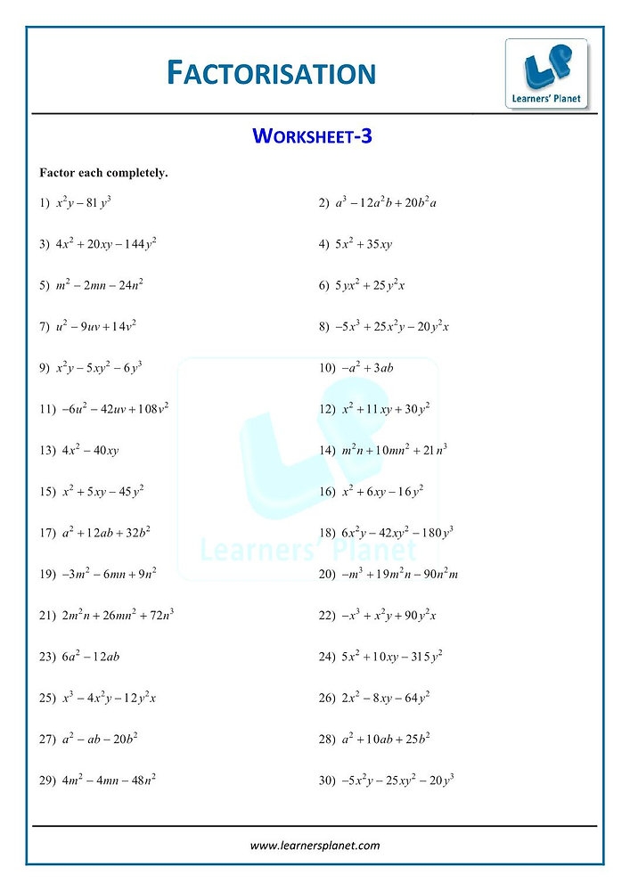 Factorisation Class 8 Worksheet (longbositerlaper.wixsite.com)