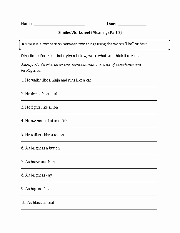 Outside the classroom, people also use worksheets in business settings. Figures Of Speech Worksheet can be used to organize data. Employees may use worksheets to assign tasks.