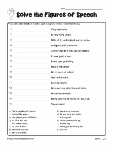 In conclusion, figures of speech worksheets are a valuable resource for teaching students about figurative language in a fun and interactive way. By using worksheets, students can practice identifying and applying different types of figures of speech, enhancing their reading comprehension and writing skills. Incorporating figures of speech worksheets into your lesson plans can make learning about figurative language both educational and enjoyable for students.