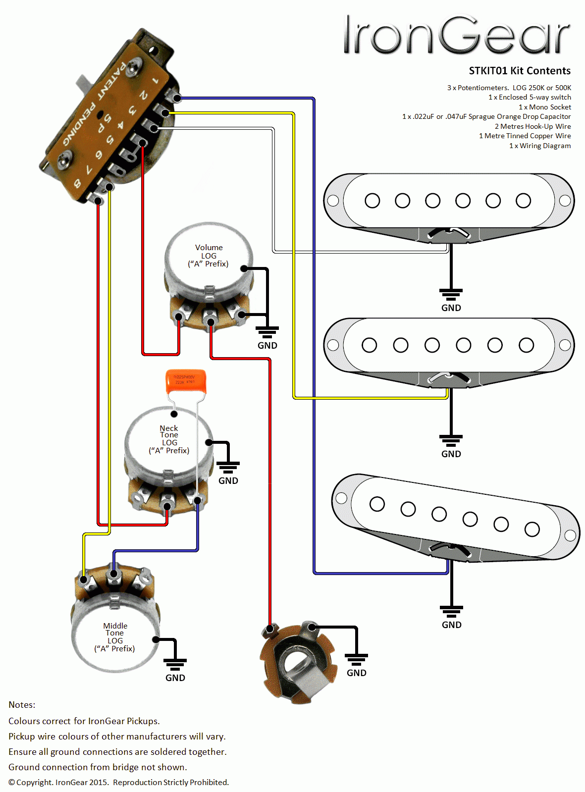 Guitar wiring diagrams typically include symbols that represent various components such as pickups, switches, pots, and capacitors. Each component has a specific function in shaping the tone and functionality of your guitar. By following the wiring diagram for your specific guitar model, you can easily identify and connect the components correctly.
