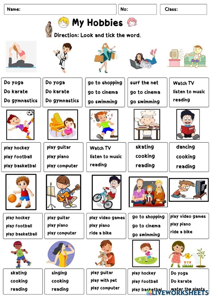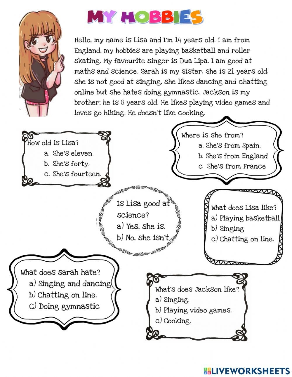 In educational settings, teachers use Hobbies Worksheet to reinforce lessons. As an example, a math worksheet might include fractions to solve, while an English worksheet may have grammar questions.