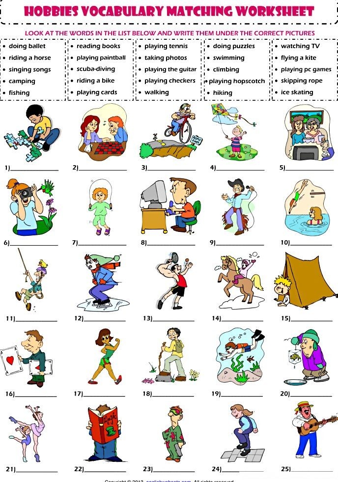 Hobbies And Interests Vocabulary Matching Exercise Worksheet Lesson