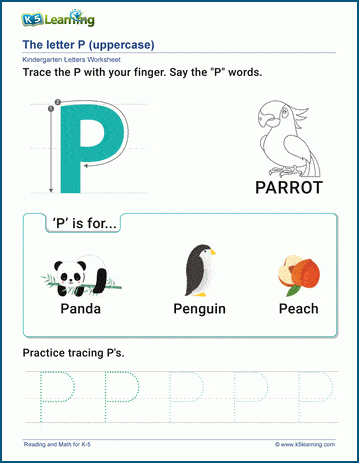 From tracing and writing the letter P to identifying words that start with P, our worksheets cover a variety of skills that will help your child master this important letter. With colorful graphics and engaging activities, your child will have a blast while learning the letter P.