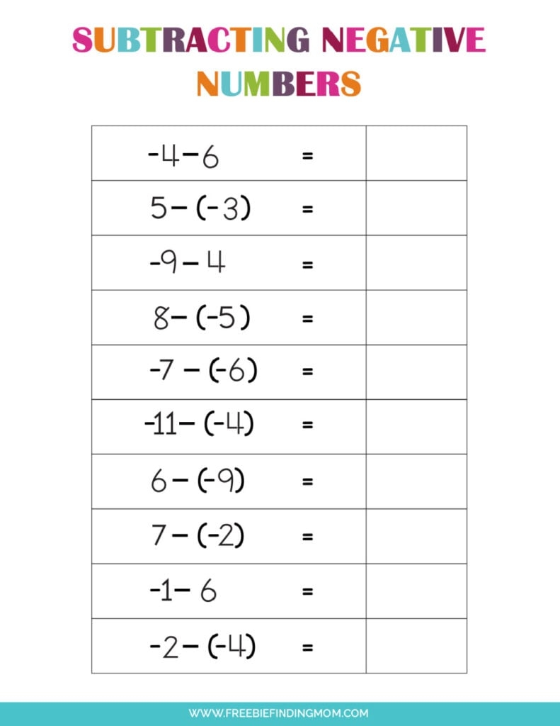 3 Free Printable Adding And Subtracting Negative Numbers