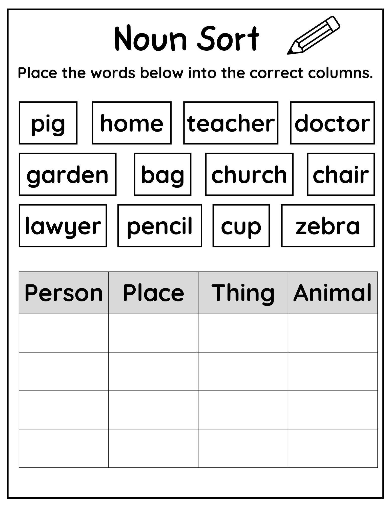 10 Printable Noun Sorting Worksheets Nouns Practice Worksheets Matching