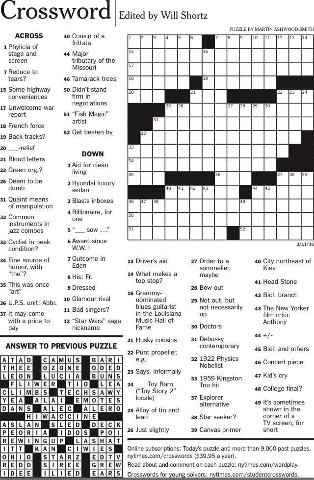 Nyt Crossword Printable Free
