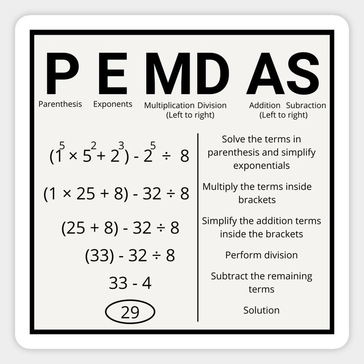 PEMDAS Acronym Meaning Problems Example With Answers Magnet (www.pinterest.com)