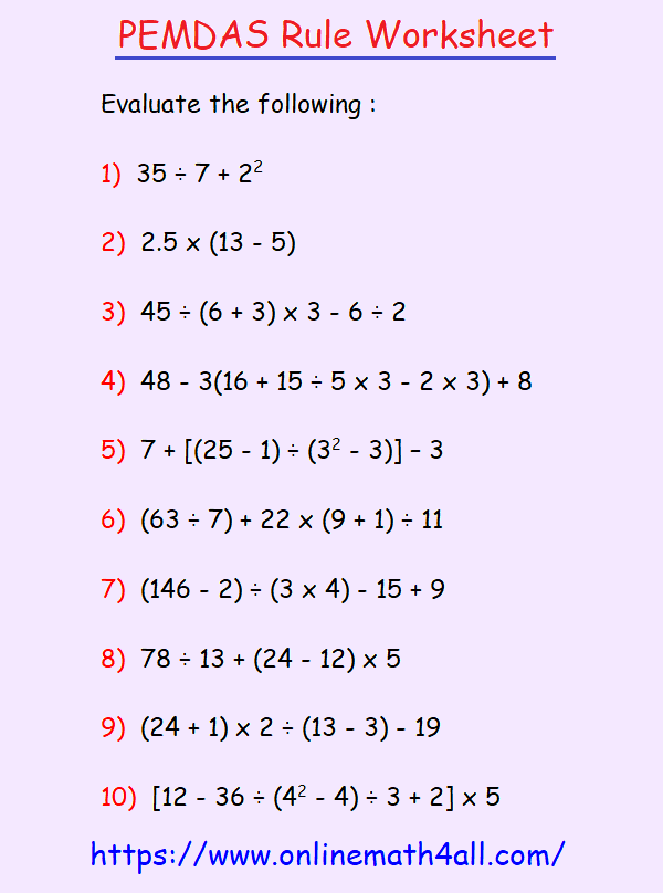 As students progress in their mathematical learning, they are often introduced to more complex concepts and operations. One such concept is PEMDAS, which stands for Parentheses, Exponents, Multiplication and Division (from left to right), and Addition and Subtraction (from left to right). Understanding the order of operations is crucial in solving mathematical problems accurately, and PEMDAS worksheets are a valuable resource in reinforcing this concept.