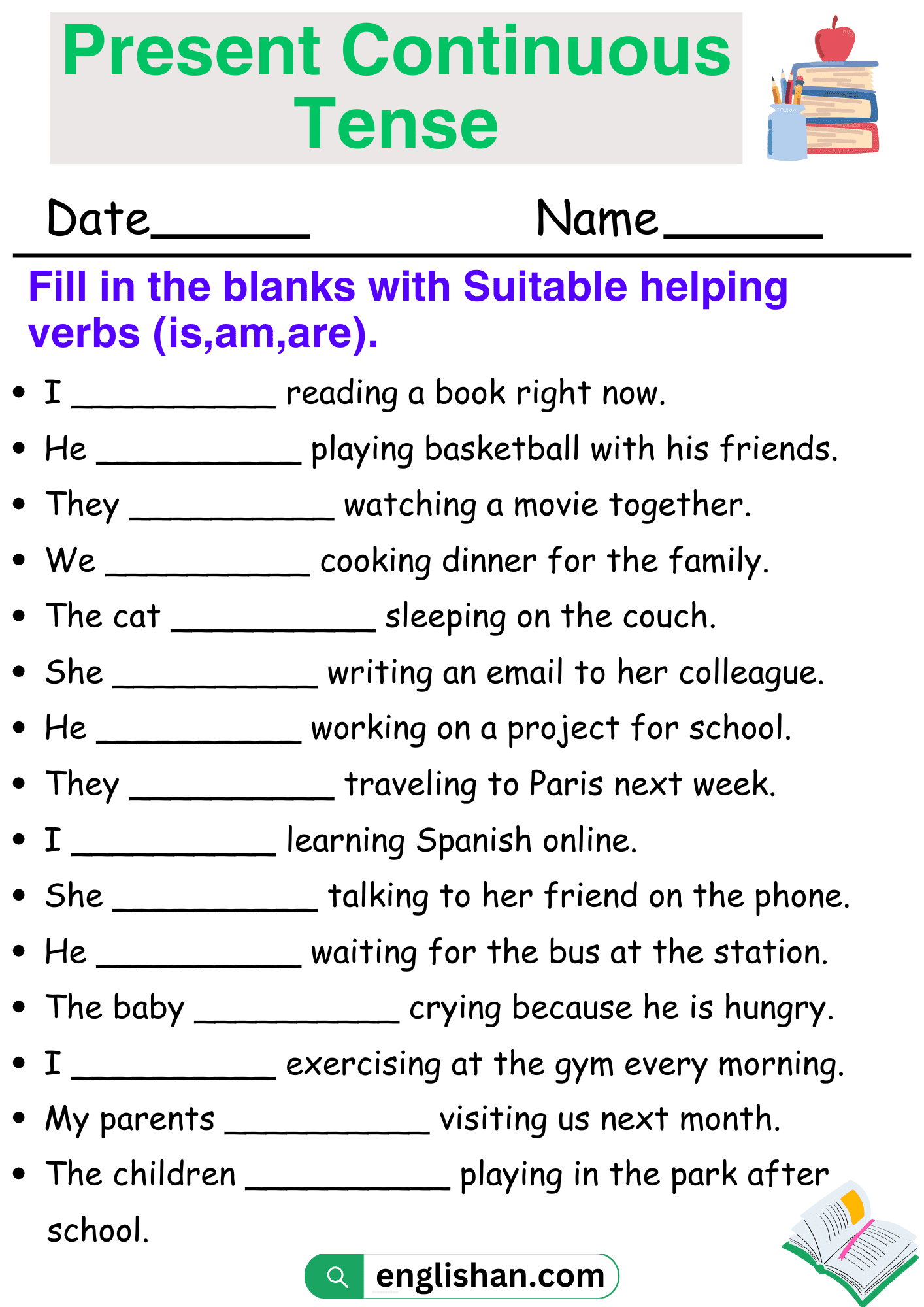 In educational settings, educators use Present Continuous Worksheets to reinforce lessons. For example, a math worksheet might include fractions to solve, while an English worksheet may have reading tasks.