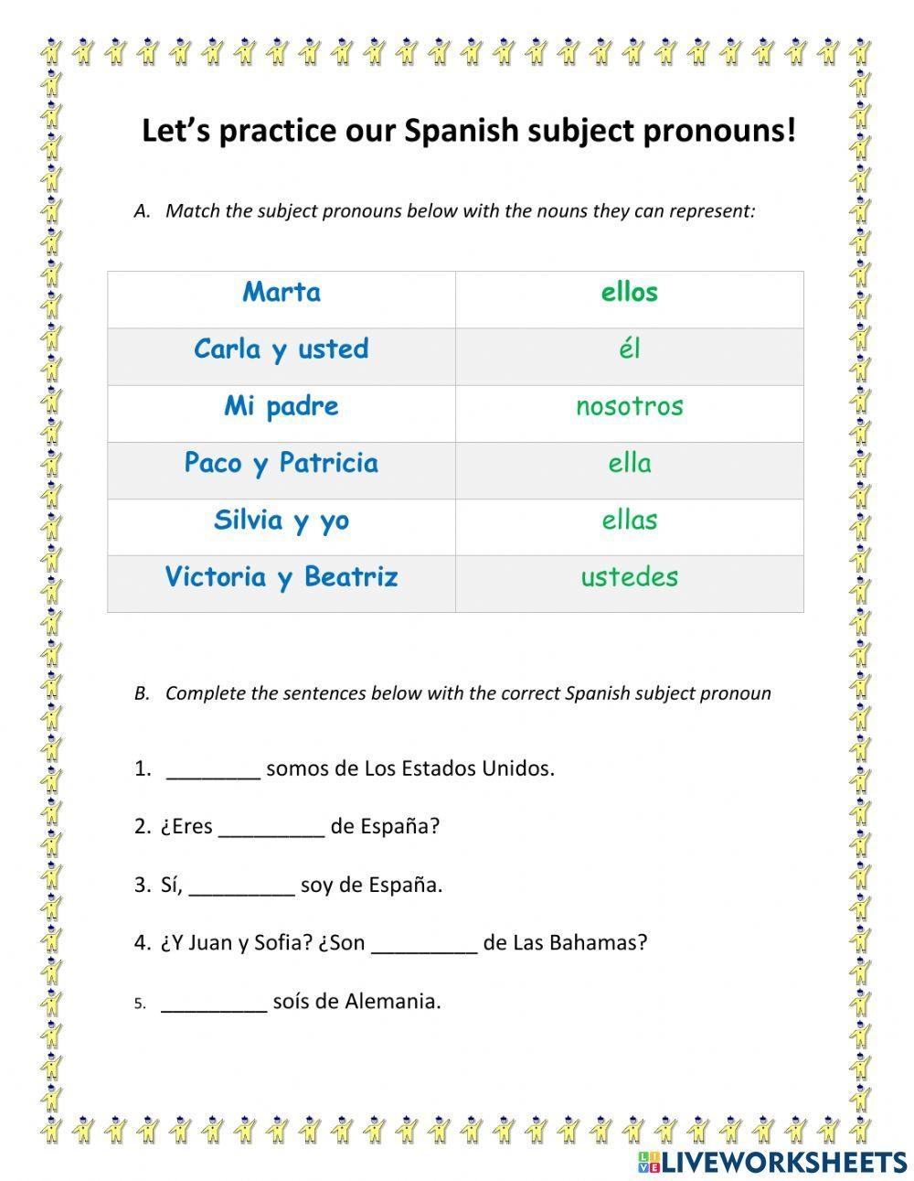 SOLUTION Spanish Pronouns Worksheet Studypool Worksheets Library