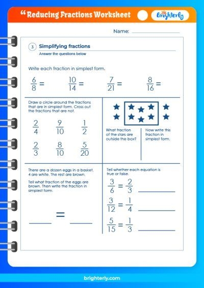 One effective way to practice and reinforce the concept of reducing fractions is through the use of worksheets. Reducing fractions worksheets provide students with ample opportunities to practice simplifying fractions and reinforce their understanding of the process. These worksheets typically include a variety of fraction problems that require students to reduce them to their simplest form.