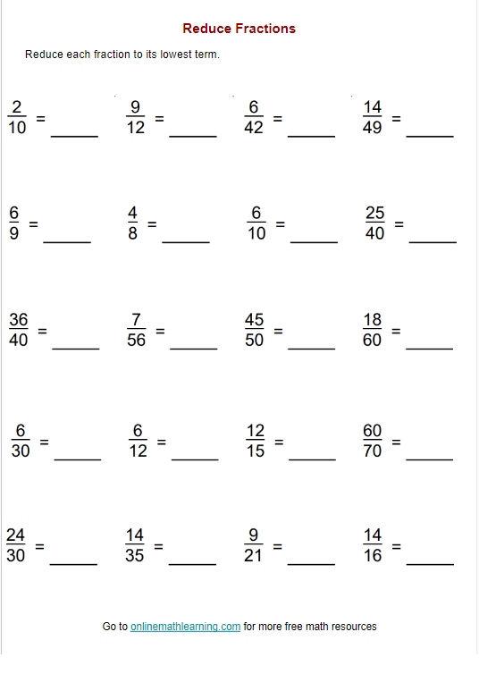 In conclusion, reducing fractions worksheets are effective tools for practicing and mastering the skill of simplifying fractions. By providing students with opportunities to work through various fraction problems and reduce them to their simplest form, these worksheets help strengthen their understanding of fraction reduction. Whether used in the classroom or for homework assignments, reducing fractions worksheets play a crucial role in enhancing students’ math skills and confidence in working with fractions.