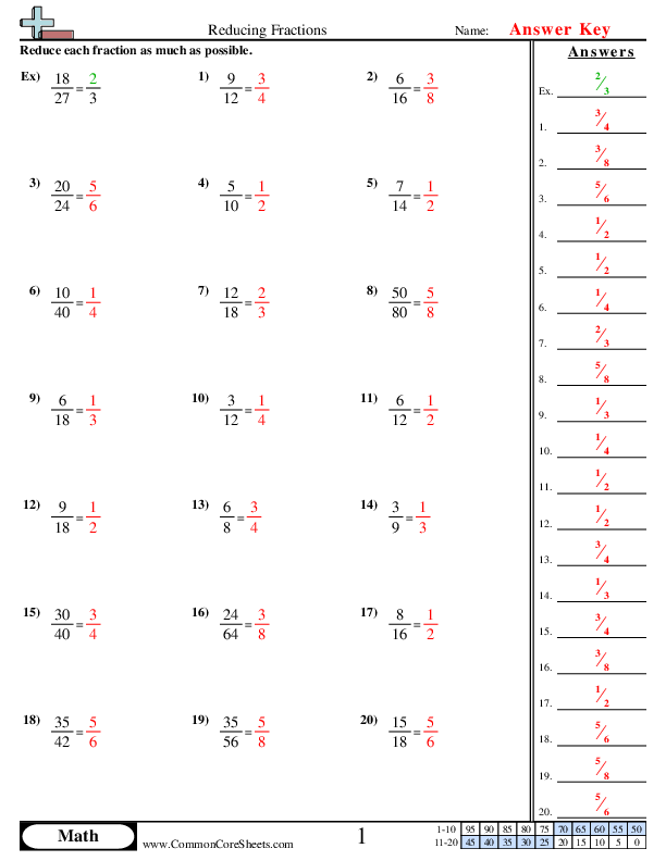 Overall, reducing fractions worksheets are valuable resources for both students and teachers in the learning and teaching of fraction reduction. They provide a structured and organized way for students to practice and master the skill of simplifying fractions, leading to improved proficiency in working with fractions. By incorporating these worksheets into their math curriculum, educators can help students develop a strong foundation in fraction reduction and enhance their overall mathematical abilities.