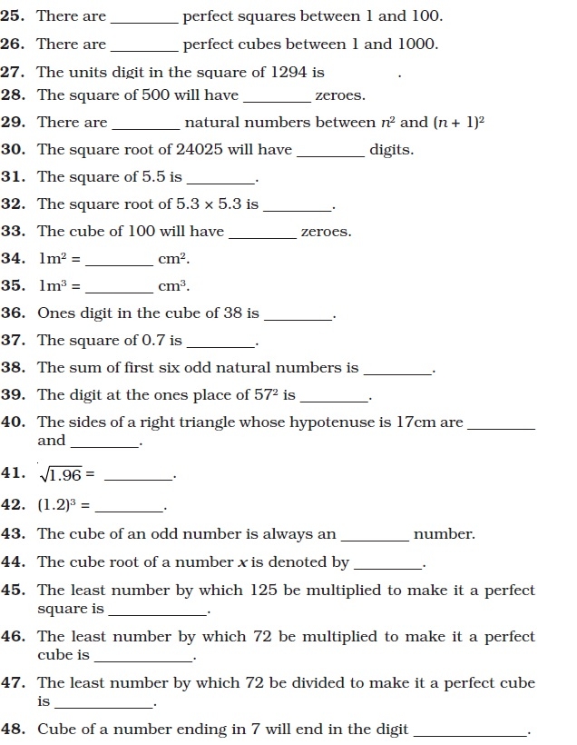 Squares And Square Roots Class 8 Worksheet Cbse Thekidsworksheet