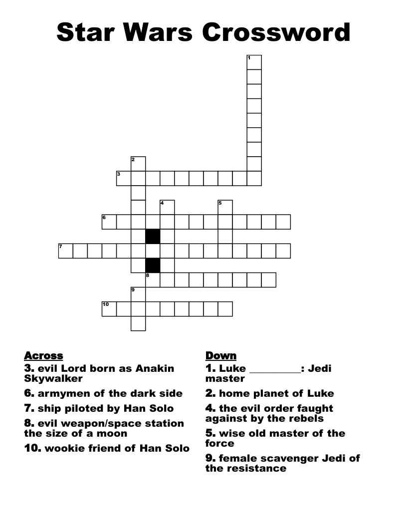 Star Wars Crossword Printable (printable.rjuuc.edu.np)