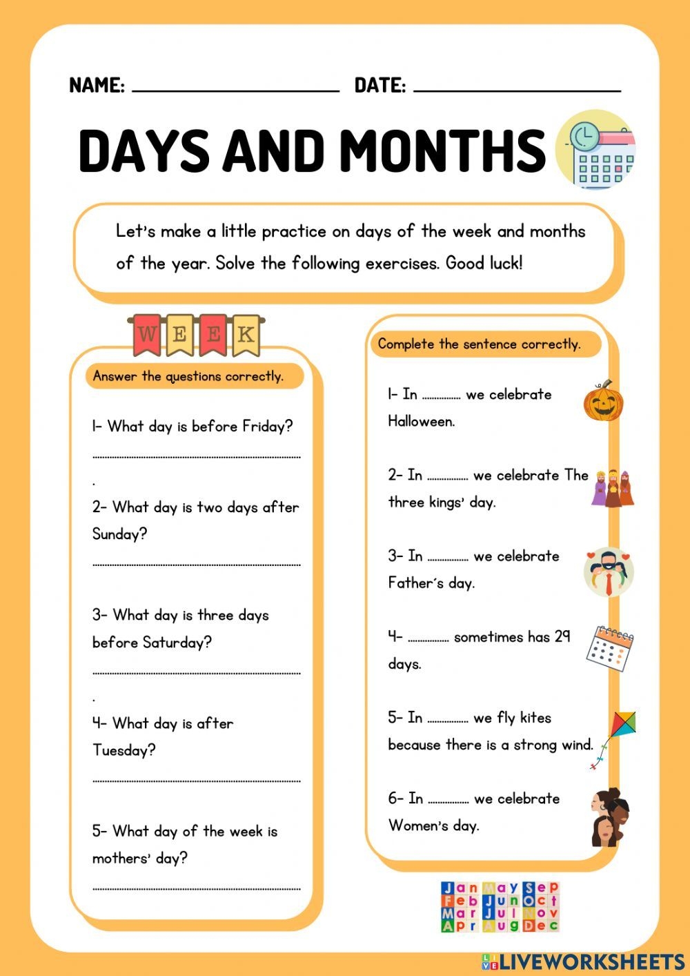 Days And Months Practice Worksheet With Pictures (www.pinterest.com)