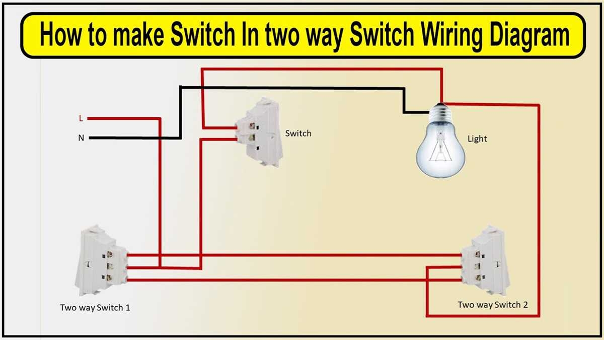 Typically, the two way switch wiring diagram will include three terminals on each switch – common, L1, and L2. The common terminal is where the power supply is connected, while L1 and L2 are the traveler terminals. The wiring configuration will depend on the location of each switch and the direction you want the power to flow.